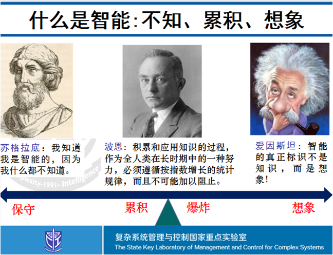 现在我们来看看大师们是怎么议论智能的。我一直认为亚里士多德的形式逻辑是人工智能的开端,他的“师爷”、古希腊三贤之首苏格拉底对于人工智能的看法是十分保守的:干脆什么都不知道;爱因斯坦的看法则充满了诗意:智能就是想象;我个人认为,还是波恩的看法最靠谱,今天的科技现状正验证了波恩的断言:知识的指数积累已经引发了今天的“智力爆炸”。当然,“爆炸”只是一种形容,还算恰当,形容过分的就是“奇点理论”了,再“任性”一点就成“人工智能威胁论”了。可惜,这些都不是爱因斯坦对智能的“想象”。