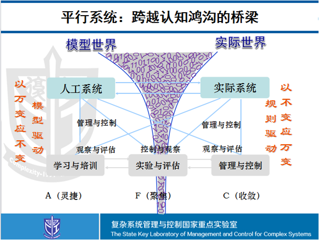 通过构建人工系统和实际系统闭环反馈、虚实互动、平行执行的平行系统,使两者协同发展,并确保系统按照人类期望的目标发展。