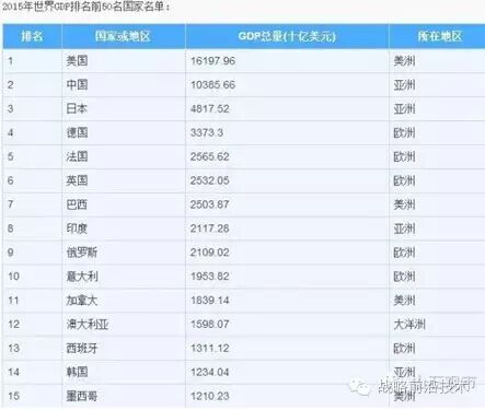 2015年世界各国GDP排行榜