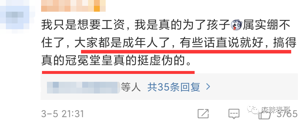 尽管在整个小作文当中,女员工都极力的示弱,讲自己如何不容易,没拿到1分钱抚养费,不想杀死小生命,无意破坏九夜茴的家庭,还抹掉了她和张小波最开始的聊天时间,但吃瓜群众都比较清醒。