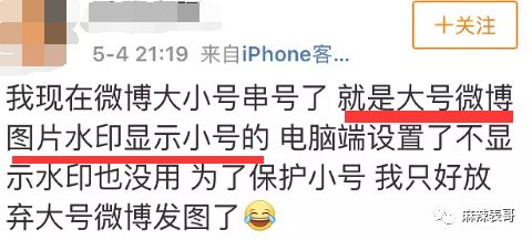 2019年,微博出了bug,大号发图片,水印是小号的。