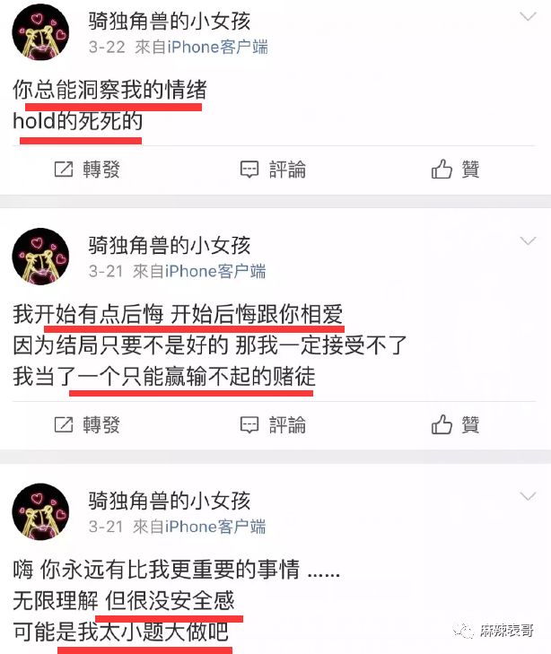 她的小号内容可以说极其丰富,记录了整个恋爱的心情,而且很多都对上了现实生活发生的事。