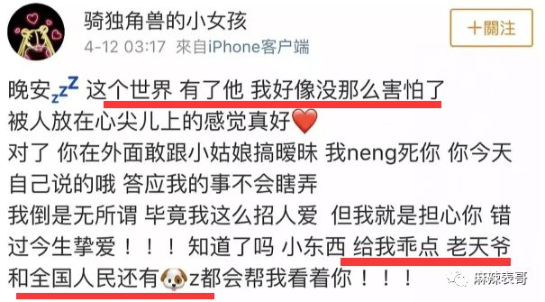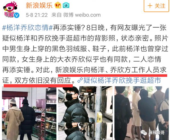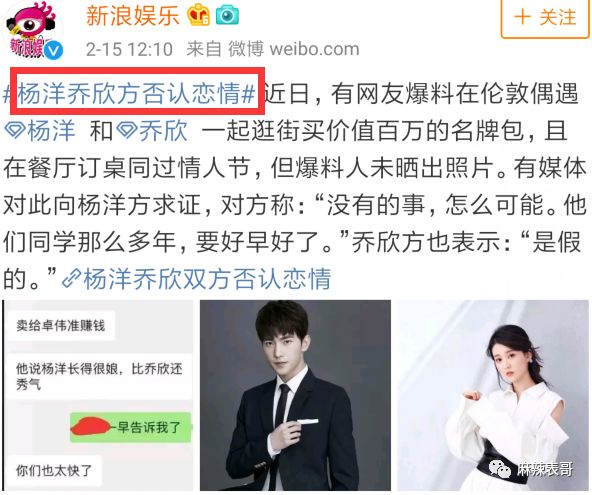 而说到小号的八卦,让我印象最深的当属杨洋和乔欣的绯闻。不管是被扒过程,还是扒出来的内容,是迄今最有趣的。