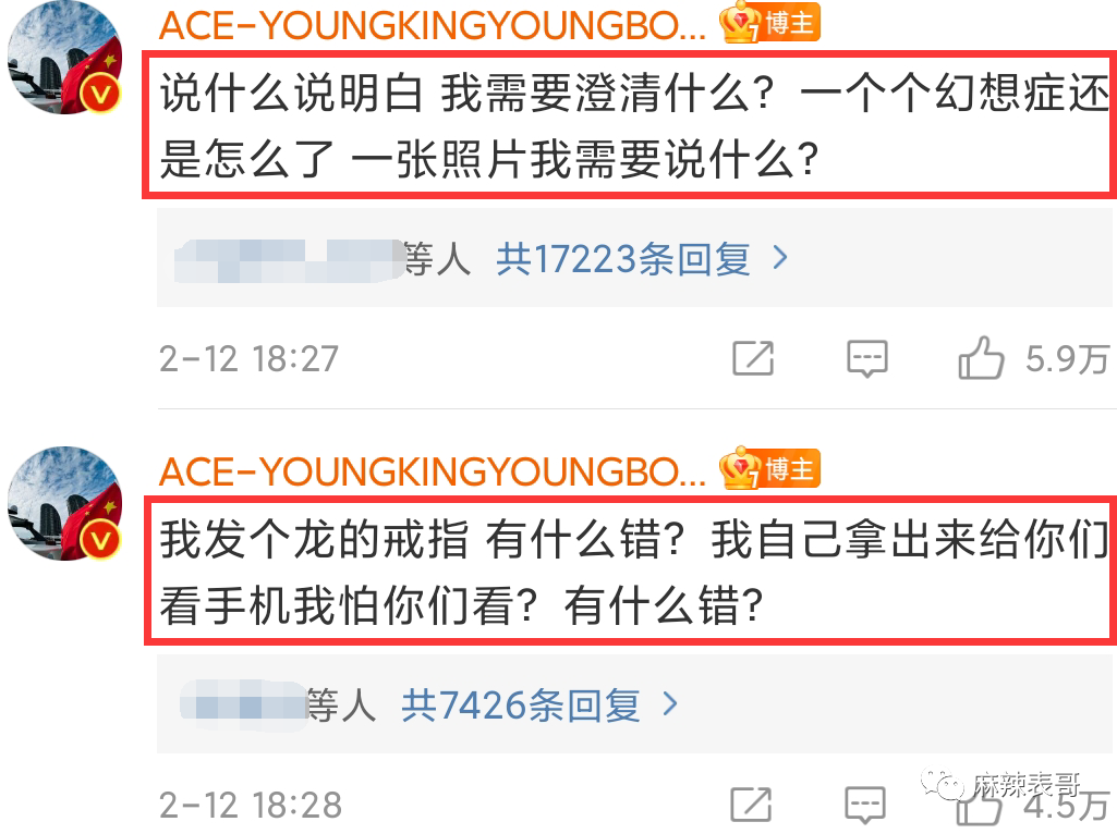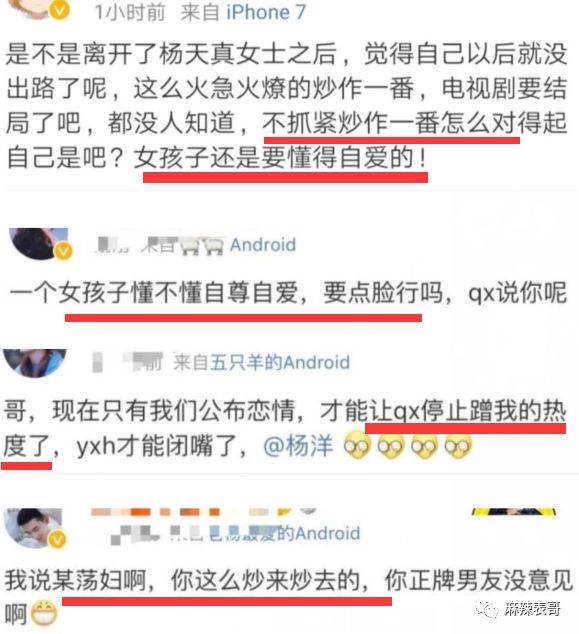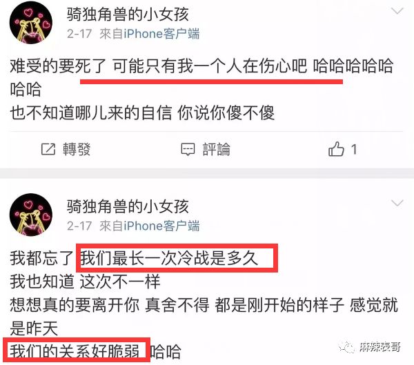 比较有趣的,是刚被爆恋情,来不及祝福就下场撕的。