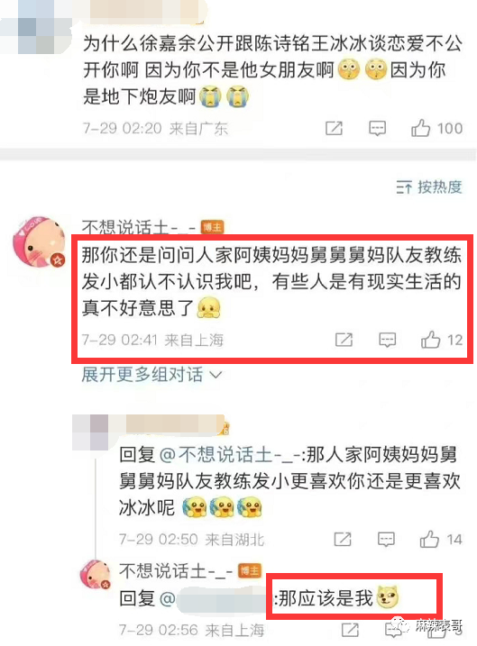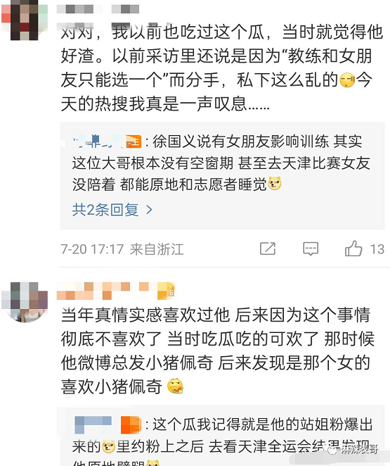 有网友叫王冰冰长点心,说徐嘉余当初在天津全运会时就劈腿了志愿者。