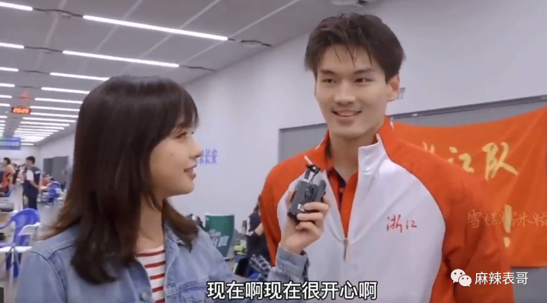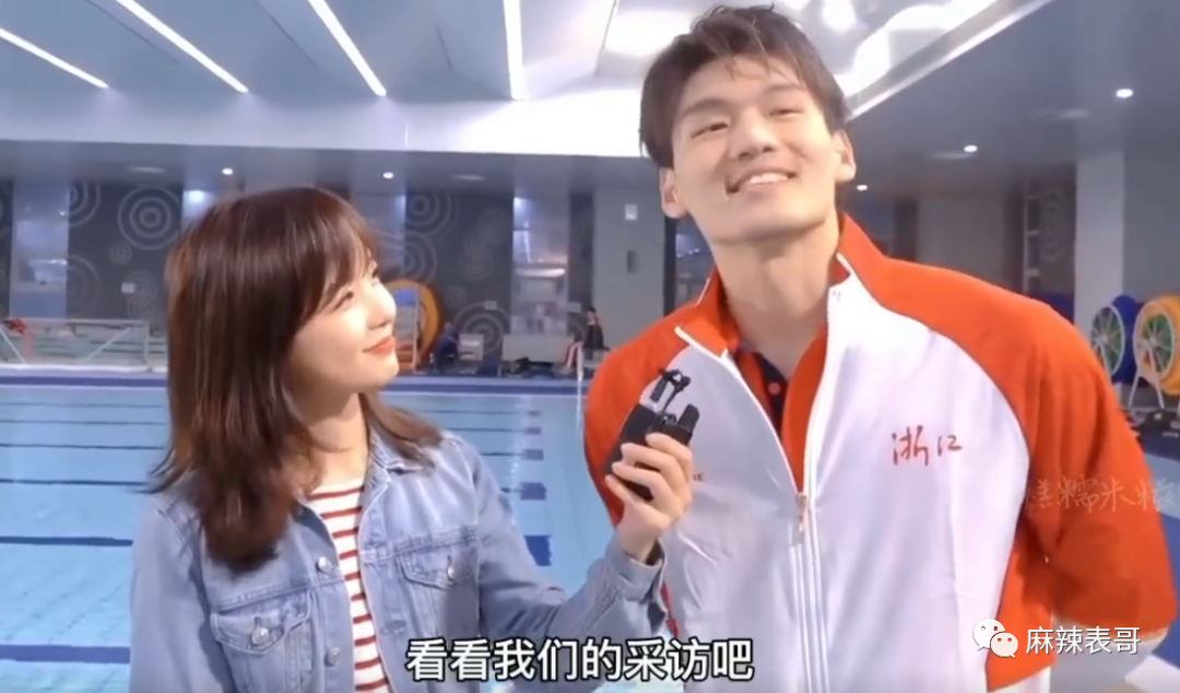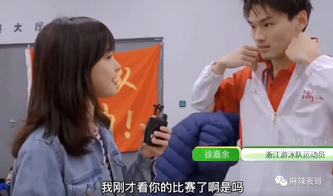 去年9月,全运会期间,王冰冰去采访徐嘉余,第一次见面,徐嘉余身上就冒出无数粉红泡泡。