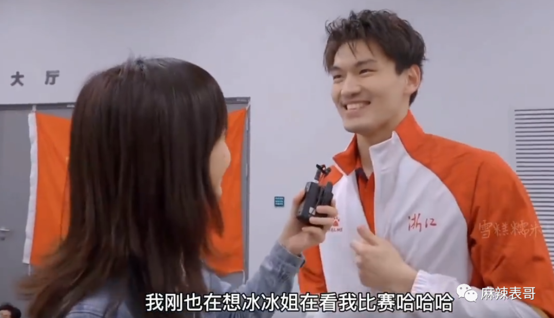 比完赛很开心,能接受冰冰的采访。