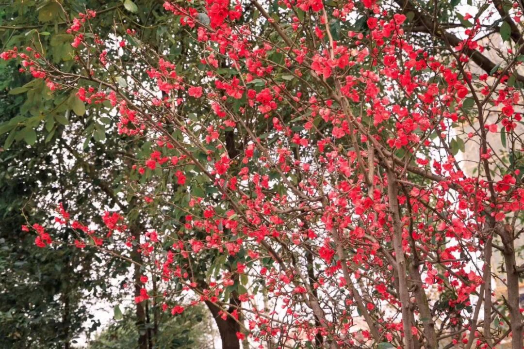 乱花渐欲,红梅扶上枝头
