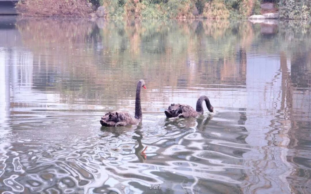 优雅的黑天鹅成双成对,自在游弋