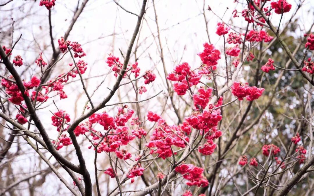 好似那山水画上泼上了点点朱砂