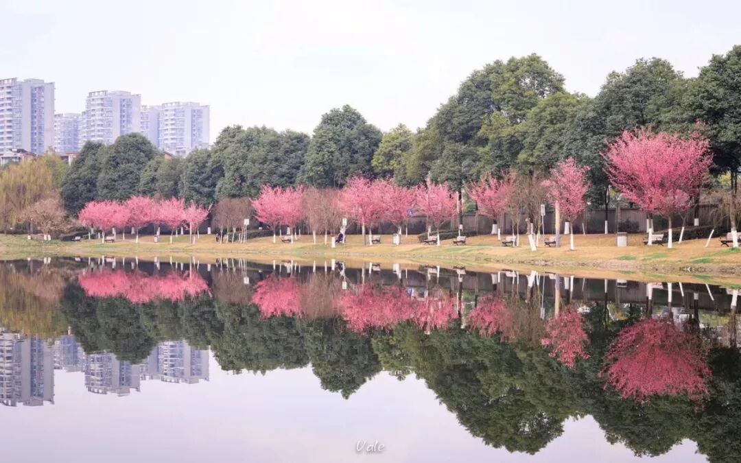 姹紫嫣红的桃花染红了犀湖畔