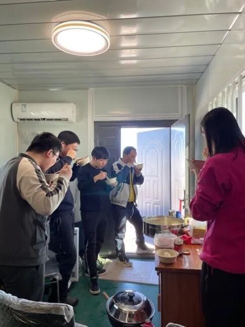 野外的工作是艰辛的,但也是快乐的。简单的午餐都能吃出团圆饭的感觉,其乐融融。