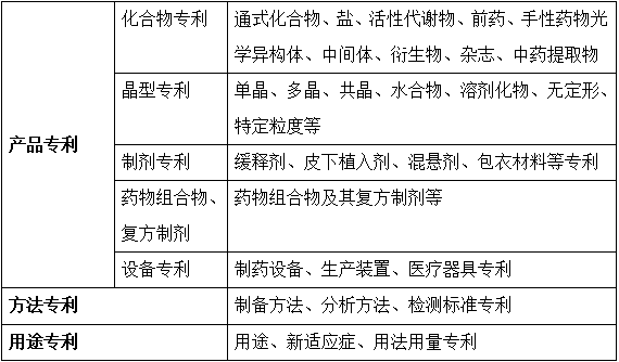 表1:医药企业可能涉及的专利领域