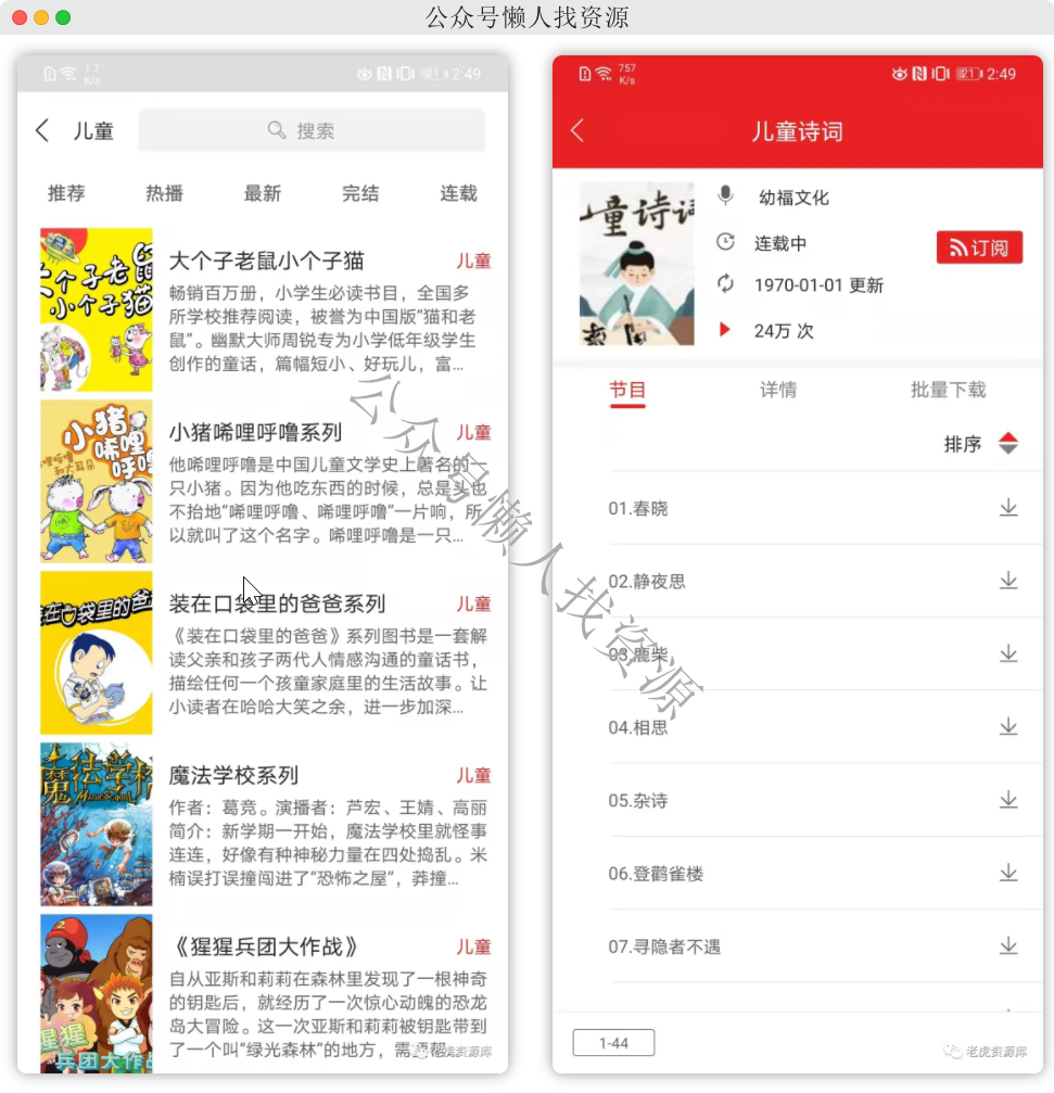 软件除了常规资源,还涵盖了儿童有声资源,包括一些故事,文化,启蒙等学习相关,有需要的可以留意一下。