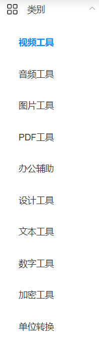 从「「视频工具、音频工具、图片工具、PDF 工具、办公辅助、设计工具、文本工具、数字工具、加密工具、单位转换」」,一应俱全。