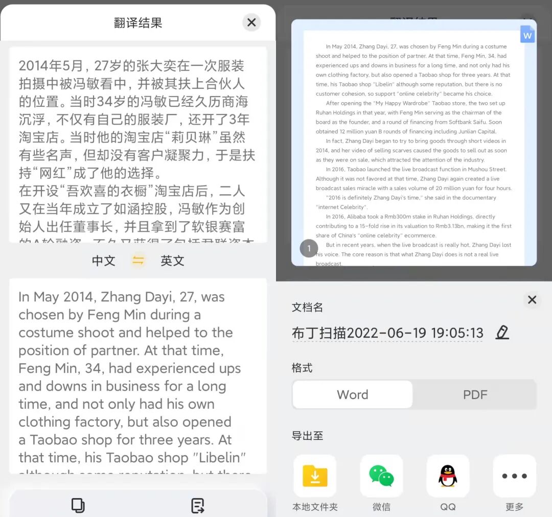 扫描中规中矩,最大的亮点在于OCR提取,点击全文就可以导出。