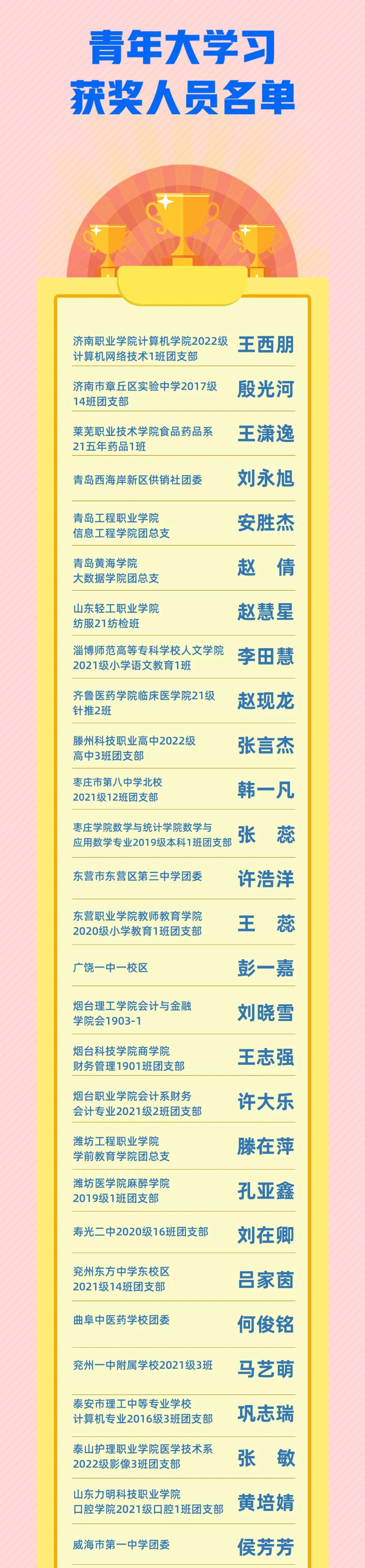 小编在2022年每期认真学习青年大学习的同学中随机抽取了两名幸运的小伙伴,共62位送出精美奖品。快来看看都有哪些小伙伴吧!
