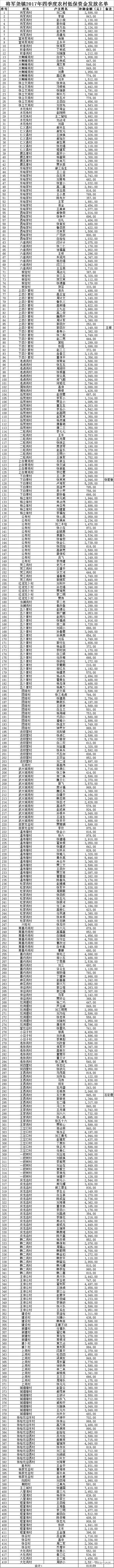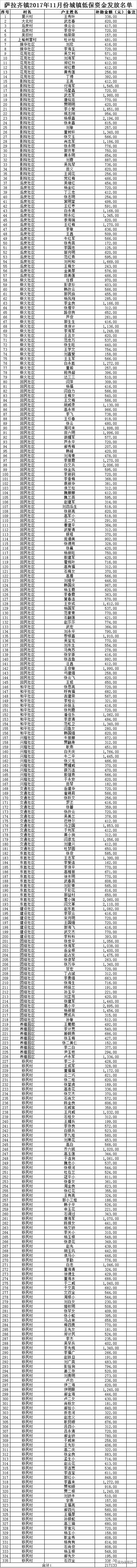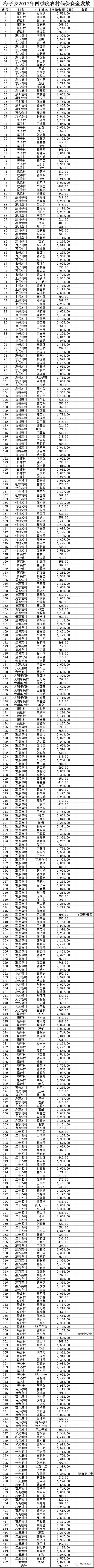 关于对2017年四季度城乡低保金及商业医疗保险发放名单公示