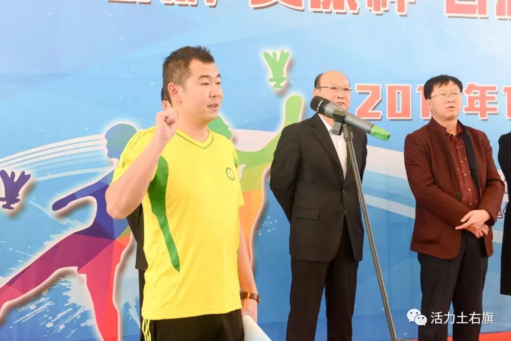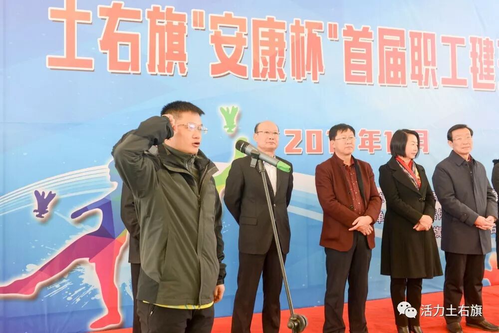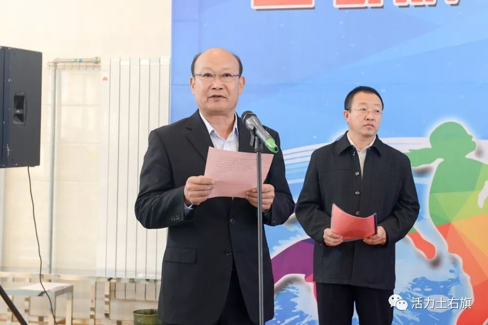 仪式上,旗委常委、统战部部长伏俊奎宣布土右旗“安康杯”首届职工毽球比赛开幕