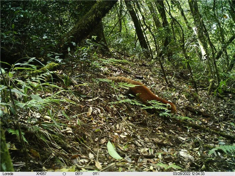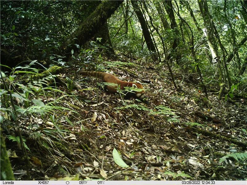 “为了能监测到小熊猫,我们根据其生活习性、地形地貌、可能行走路线等特点布设红外相机。技术人员经过近7年的不间断监测和变换监测点位,直到2022年的3月终于捕捉到了小熊猫活动的影像。小熊猫白天大部分时间都在树上或洞里休息,像这样白天拍到它在地上活动的身影实属罕见。”龙陵小黑山省级自然保护区技术人员罗国启说。