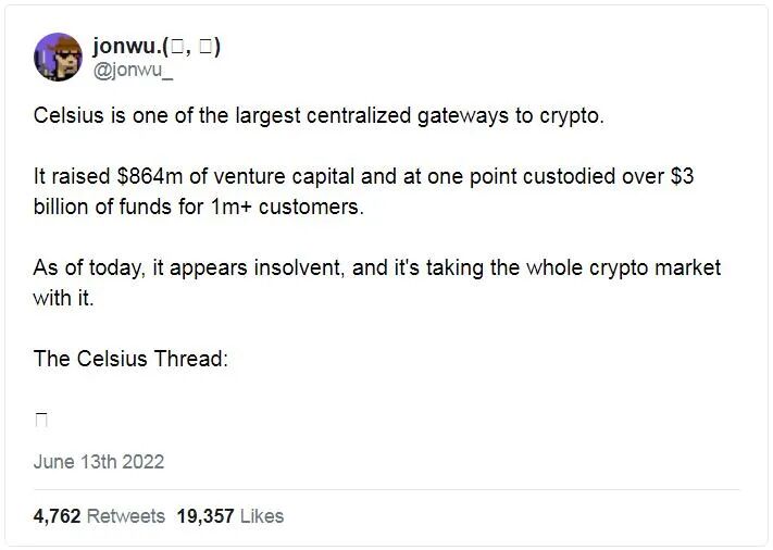 在遭受打击的各行各业中,加密货币和 Web3 产业受到的影响尤为严重。暴跌的不只是各类加密货币,以加密货币为基础的各类投资项目更是纷纷暴雷,让许多人瞬间血本无归。其中稳定算法币 Terra 的崩盘最为严重,大部分人轻信了项目高达 20% 回报率的承诺,最后却发现本金赔得一干二净。如今加密货币平台 Celsius 又在最近突然无法提现,疑似成为又一个暴雷案例。许多用户已经对拿回本金不抱任何希望。