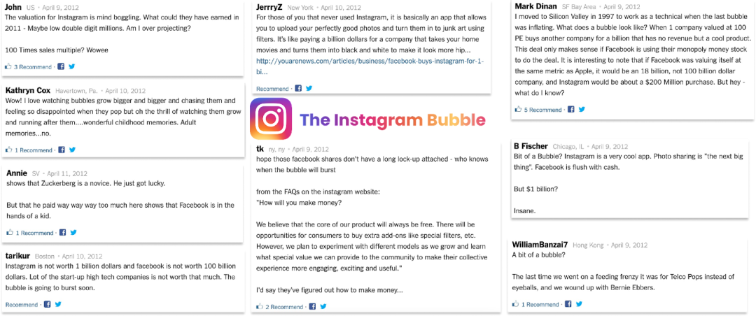 如果你觉得目前不少 Web3 初创企业都被过度炒作,请不要感到意外,因为如今的巨头们也都经历过这一阶段。在 2021 年 Facebook 宣布以 10 亿美元收购 Instagram 时,许多评论也持悲观态度,认为估值过高。