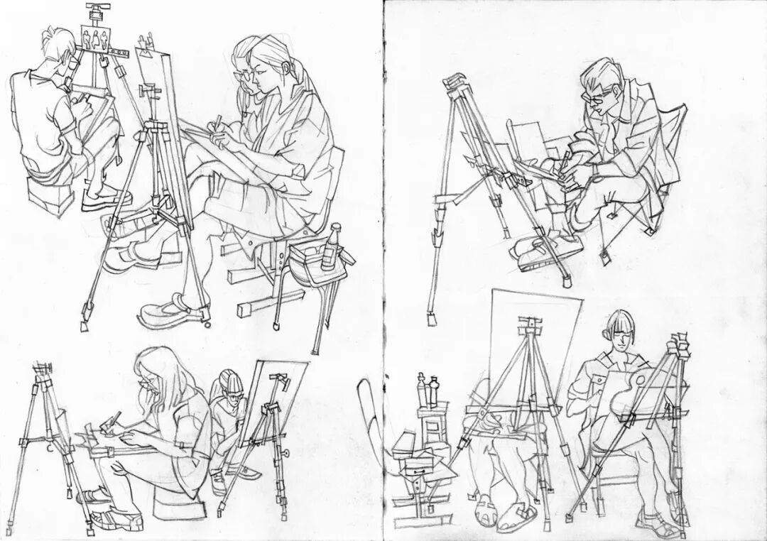 我充分吸取了前三次申请的教训,纠正了很多创作误区。出于对自己的保护与避免给家人带来压力,这一次申请我是完全瞒着父母的。最终,在8月末飞机起飞前,我已经完成了将近90页的速写本内容。