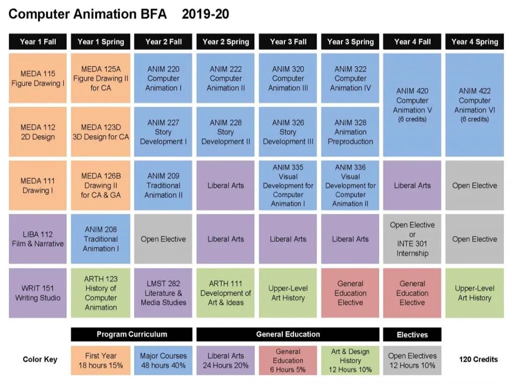 关于CalArts角色动画系的课程设置,总的来说,尽管学校并未对学生的创作风格和发展路径有任何的限制。在CalArts角色动画系的学习还是可以根据学年分为四个阶段: