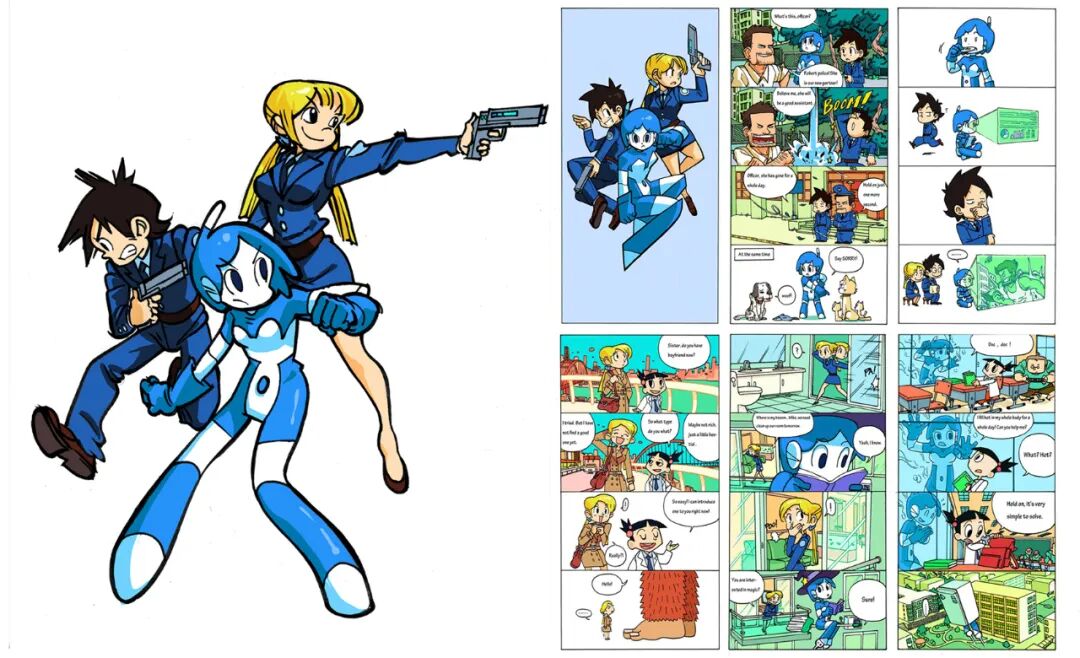 而创作实践来说,不得不提的就是在2013年秋成形的漫画《铁甲女警》,这是我真正从内心认可的作为正式商业连载的作品。这部作品让我在大学毕业前夕获得了北电漫画节最佳四格漫画奖的荣誉。