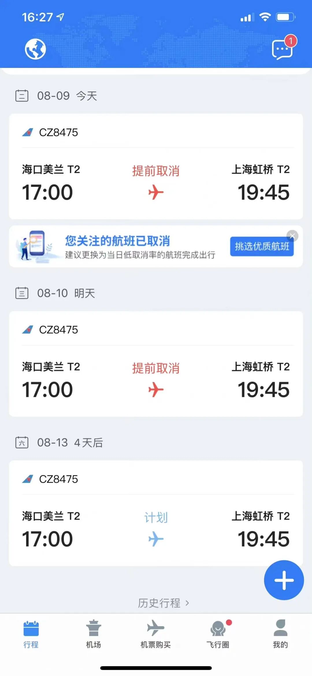 8月14日下午,突然有人在群里说航空公司放票了,她埋头点击屏幕,抢到了四张当晚返回上海的机票。她和丈夫边收拾行李,准备乘坐酒店大巴闭环抵达海口美兰机场,边默默地祈祷航班千万不要再一次取消。