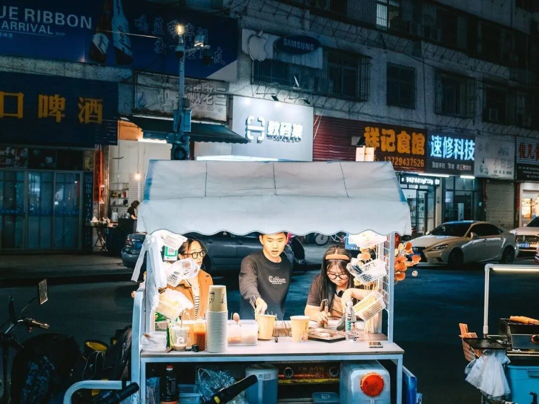 现在,我每天下午照常去幼儿园门口卖烤肠,结束之后再赶到仁港美食街,有时连饭都顾不上吃。我一般凌晨一点半收摊,但有时也会晚到四五点,回去再准备第二天的食材。刚开始,朋友都很震惊,觉得我离谱,有些一直劝我要去工作,认为可以接触到更多东西。我说以后可能会去,但不是现在。