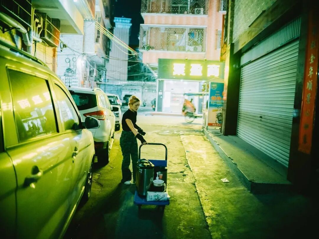 ●凌晨两点,疫情原因街上已经没有了行人,黄榕珊准备提前收摊。