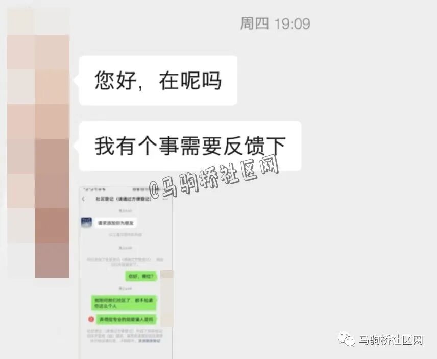 据当事人向马驹桥社区网透露,当时她刚吃完晚餐,看到微信有人加好友并注释:社区登记。通过之后马上问对方是哪位?结果半天没有答复,事主就觉得不对劲。然后警惕性的联系了村委会,得知村委会并没有安排工作人员通过微信进行什么社区登记。