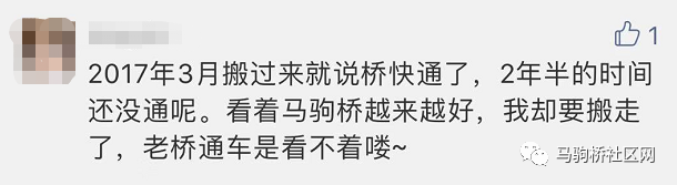 官方回复中也提到了,桥北侧的道路顺接需要等到开发区对西环南路扩宽改造的时候才能实现“老桥”双向通车,而这要等到2023年才能实现(做好到年底才能实现的准备)。近20万的马桥人,还要继续苦等下去。一些曾经见证老桥开始修建的网友还没有等到它的开通就离开马驹桥了。