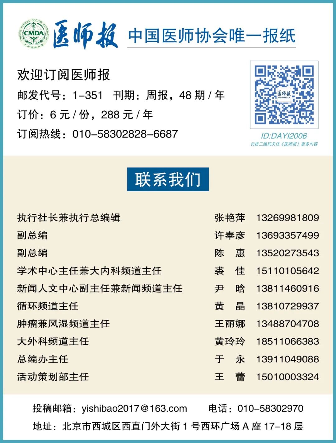 《医师报》投稿公共邮箱:yishibao2017@163.com