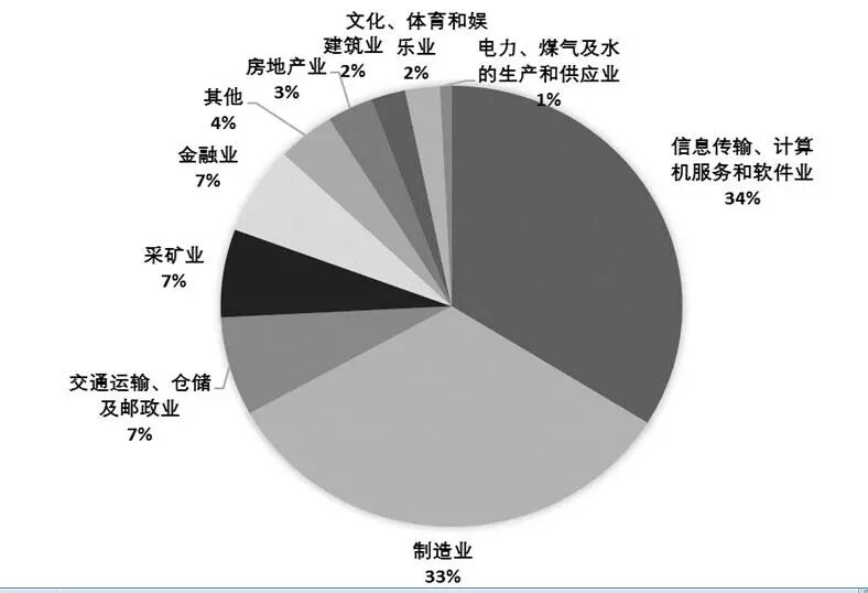 从对“一带一路”沿线的行业分布来看,投资资金主要流向制造业与信息传输、计算机服务和软件业,占比分别为33%和34%;采矿业、交通运输、金融业占比均等,各占7%;房地产、建筑、文体、电力、煤气及水的生产和供应业占比较为分散。