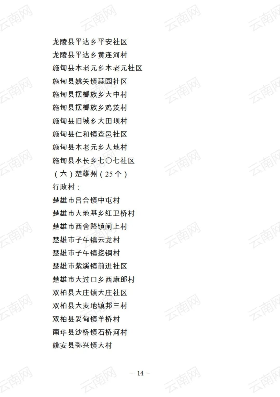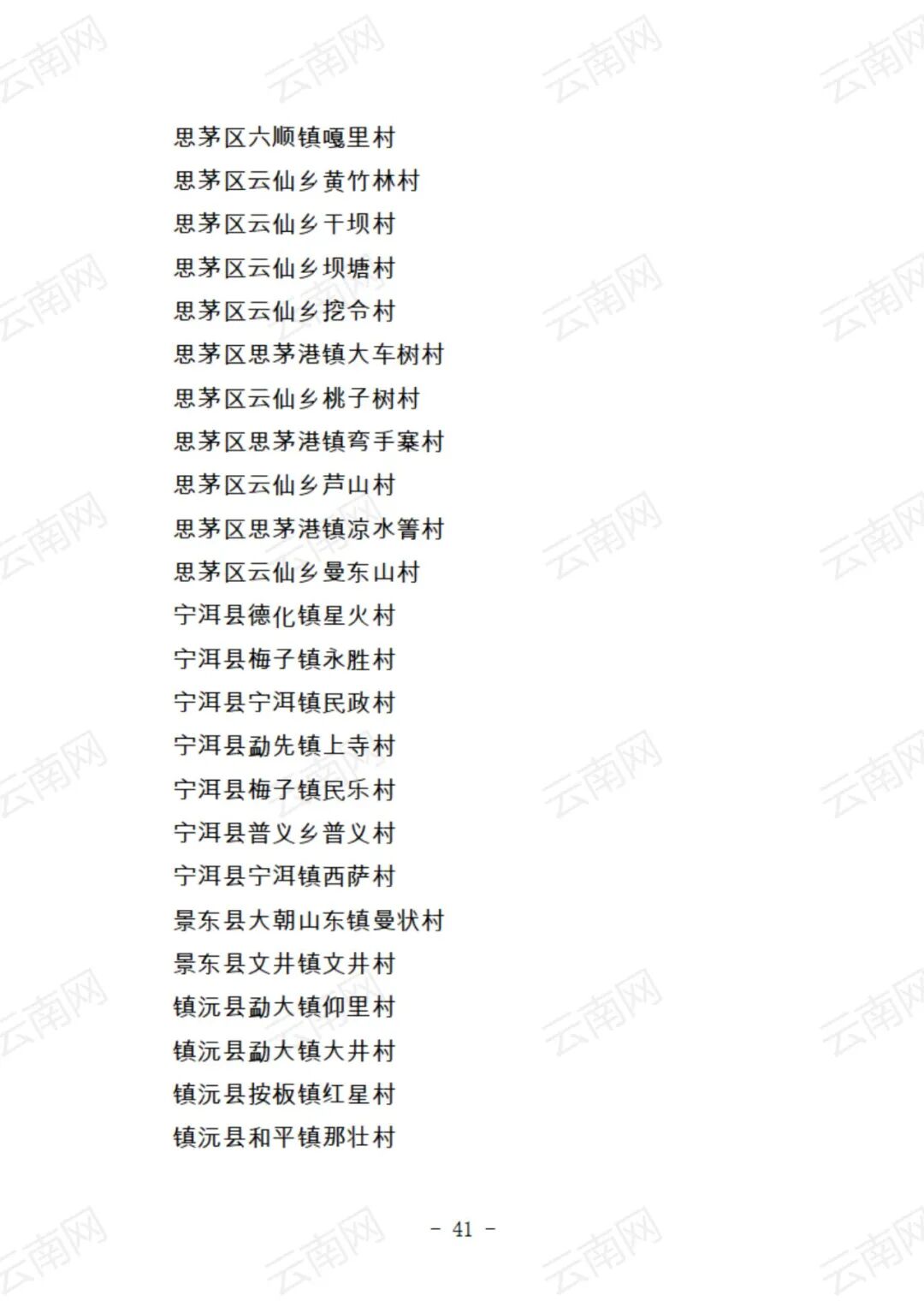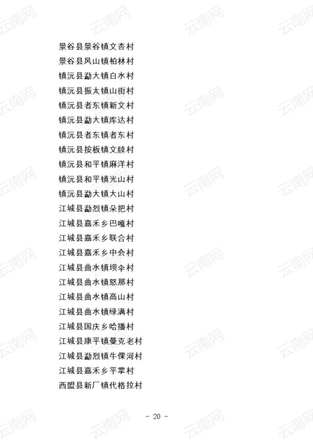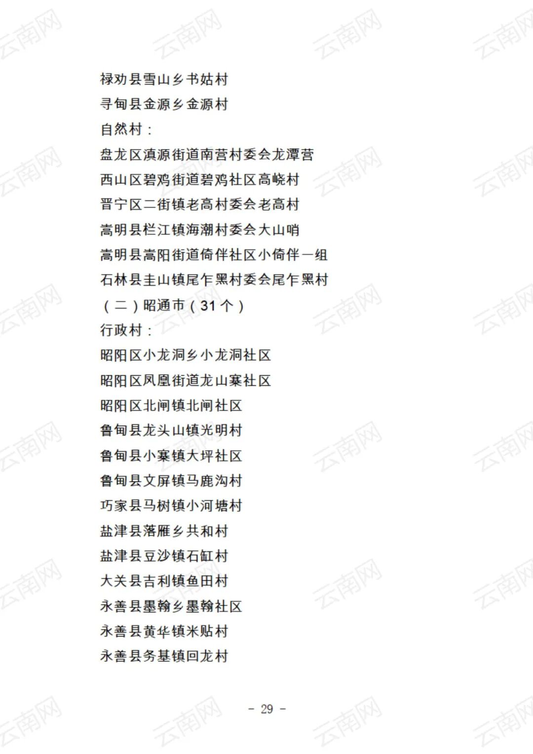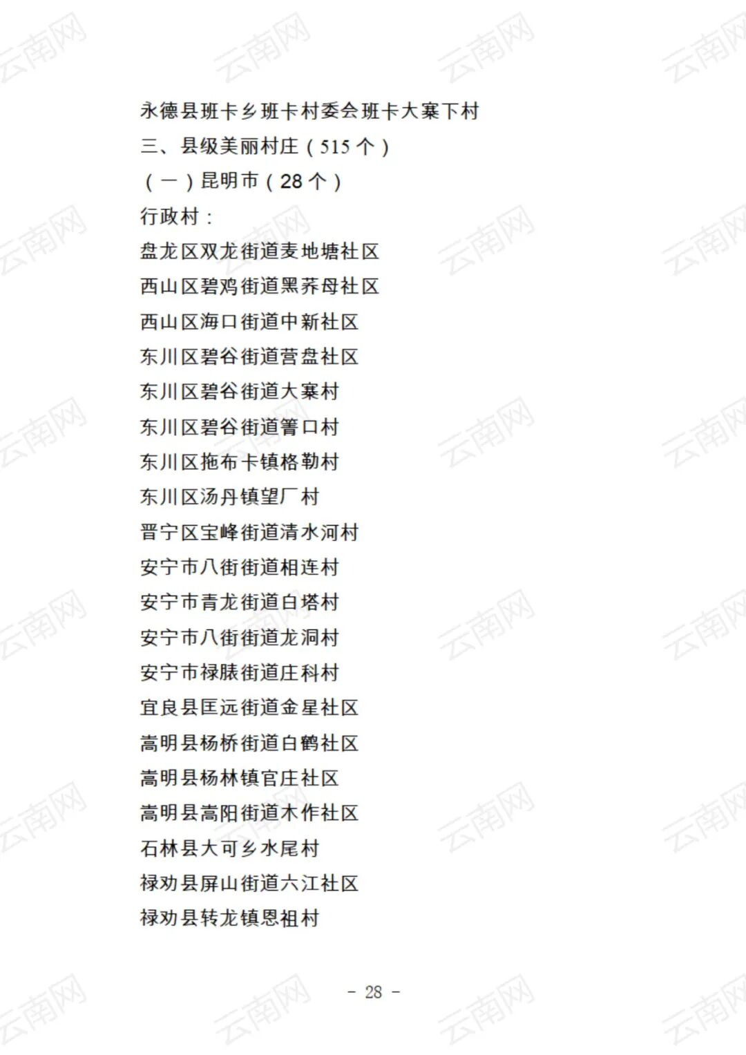 关于云南省2021年度美丽村庄建议名单的公示