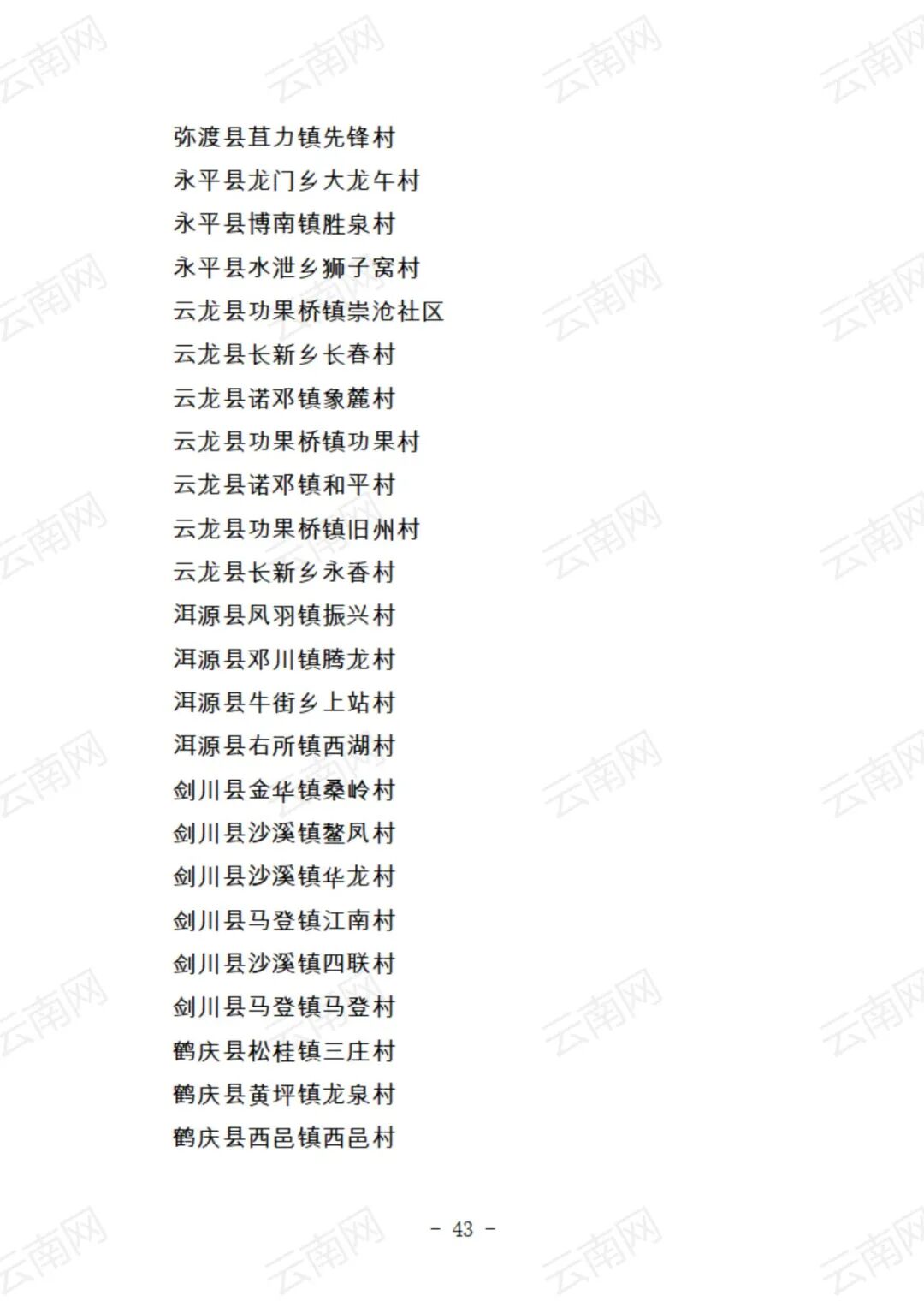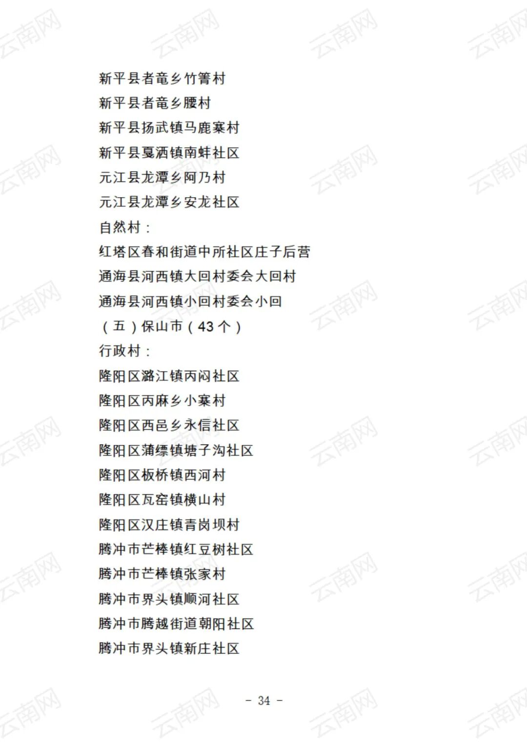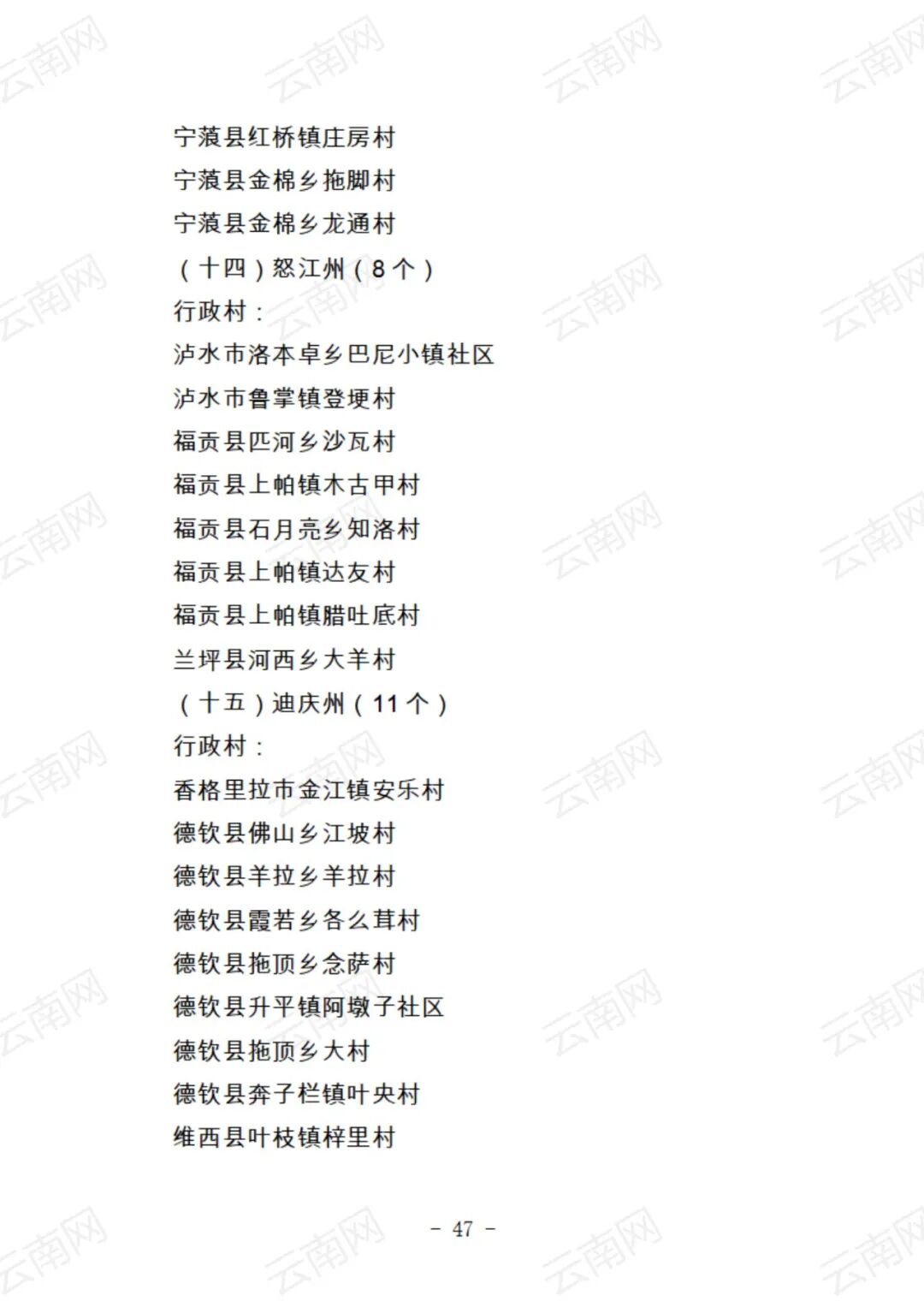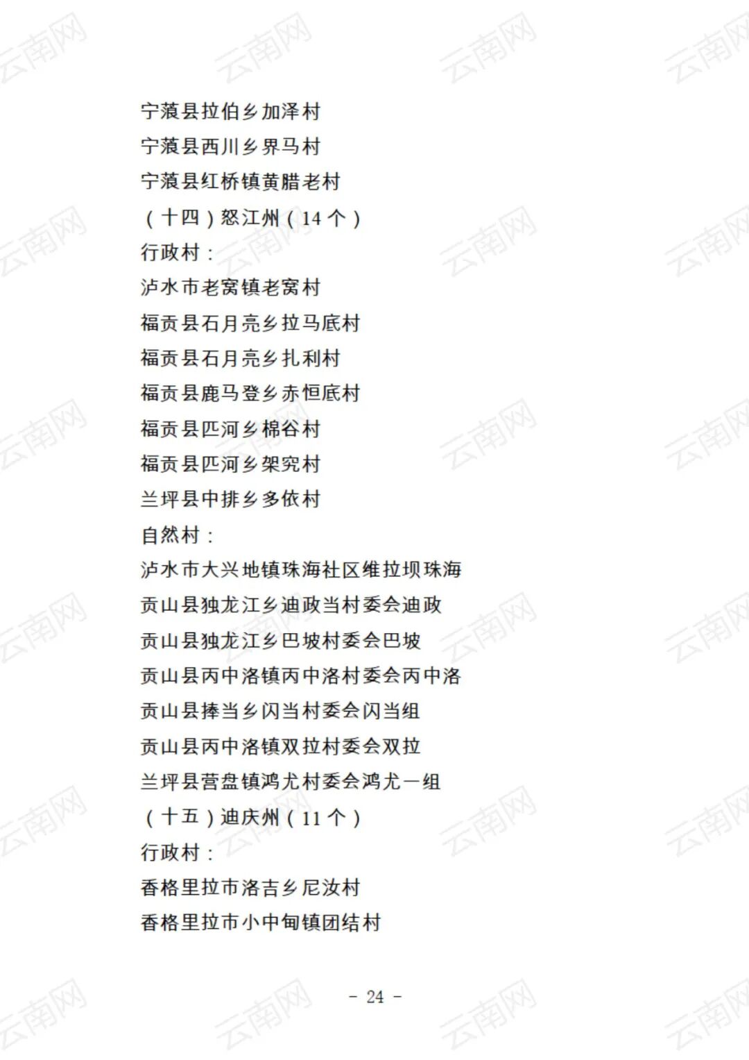 关于云南省2021年度美丽村庄建议名单的公示
