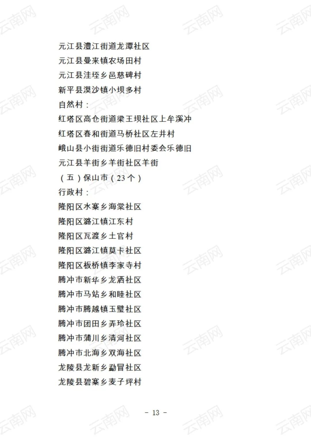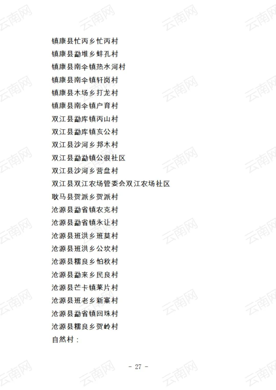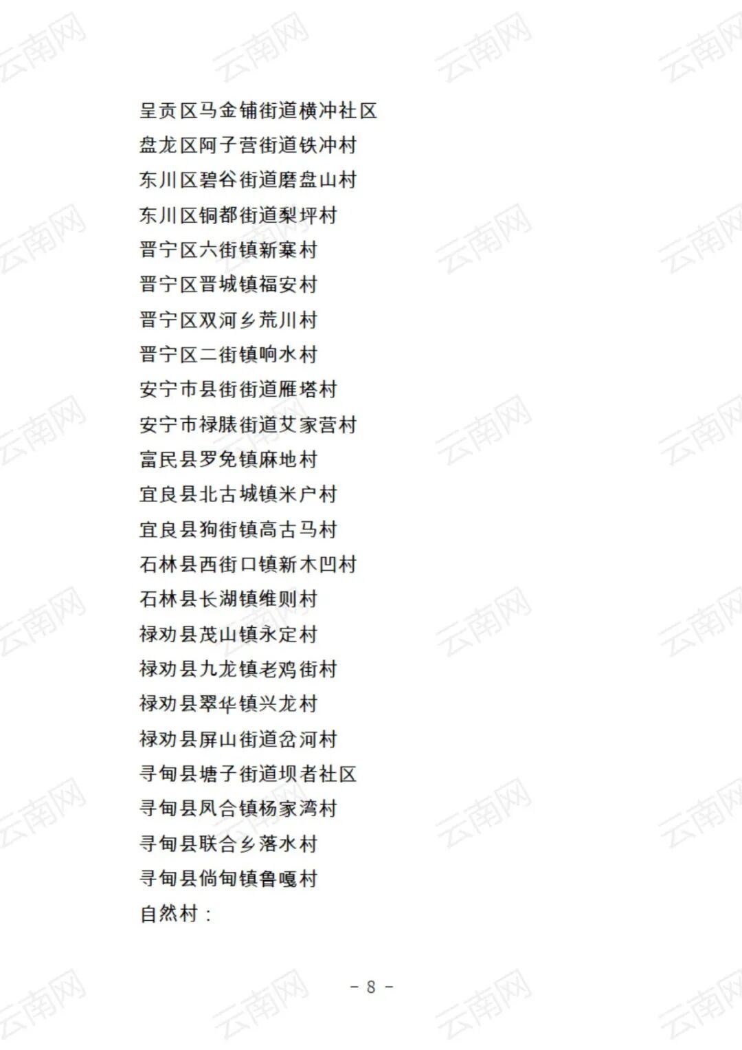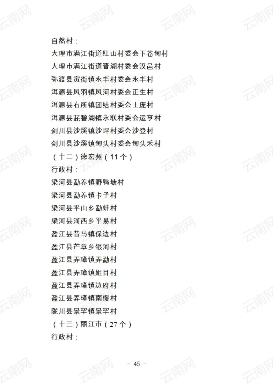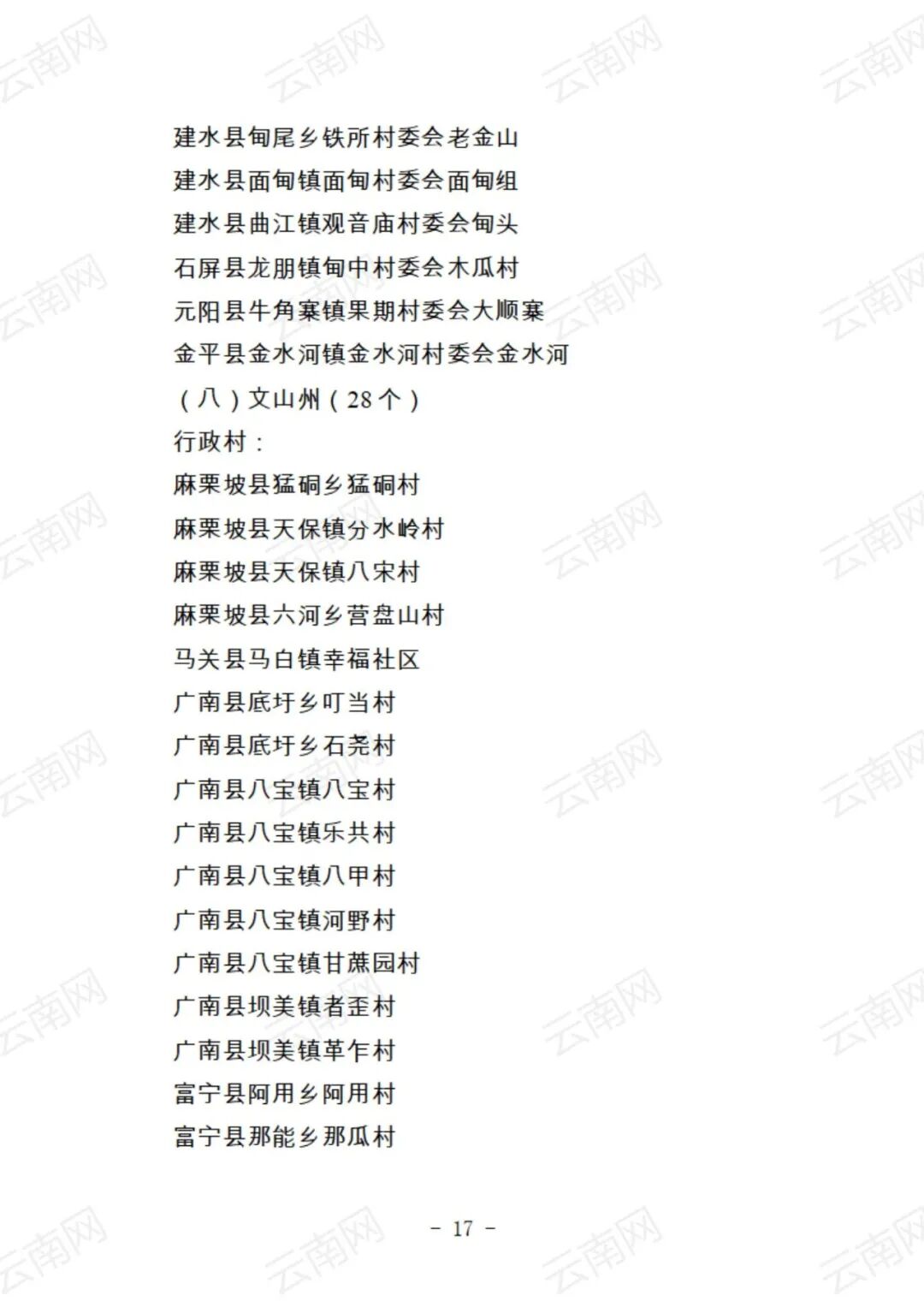 关于云南省2021年度美丽村庄建议名单的公示