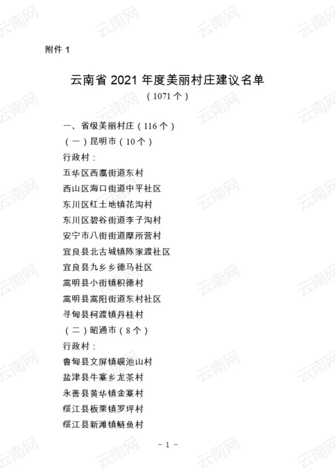 云南省2021年度美丽村庄建议名单的公示》