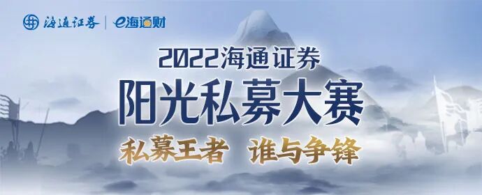 由海通证券主办,海通资管、海通期货、海富通基金、券商中国、新浪财经等协办的“海通2022阳光私募大赛”将于近期开赛,7月1日起正式接受报名。