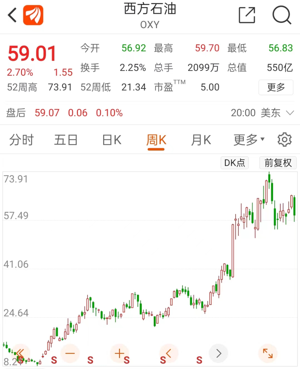 在国际油价持续飙涨、巴菲特大手笔扫货的刺激下,西方石油的股价一路飙涨大涨,是今年以来标普500指数中表现最好的股票,2022年年内累计涨幅达到104.33%,总市值升至548.18亿美元(约合人民币3707亿元)。