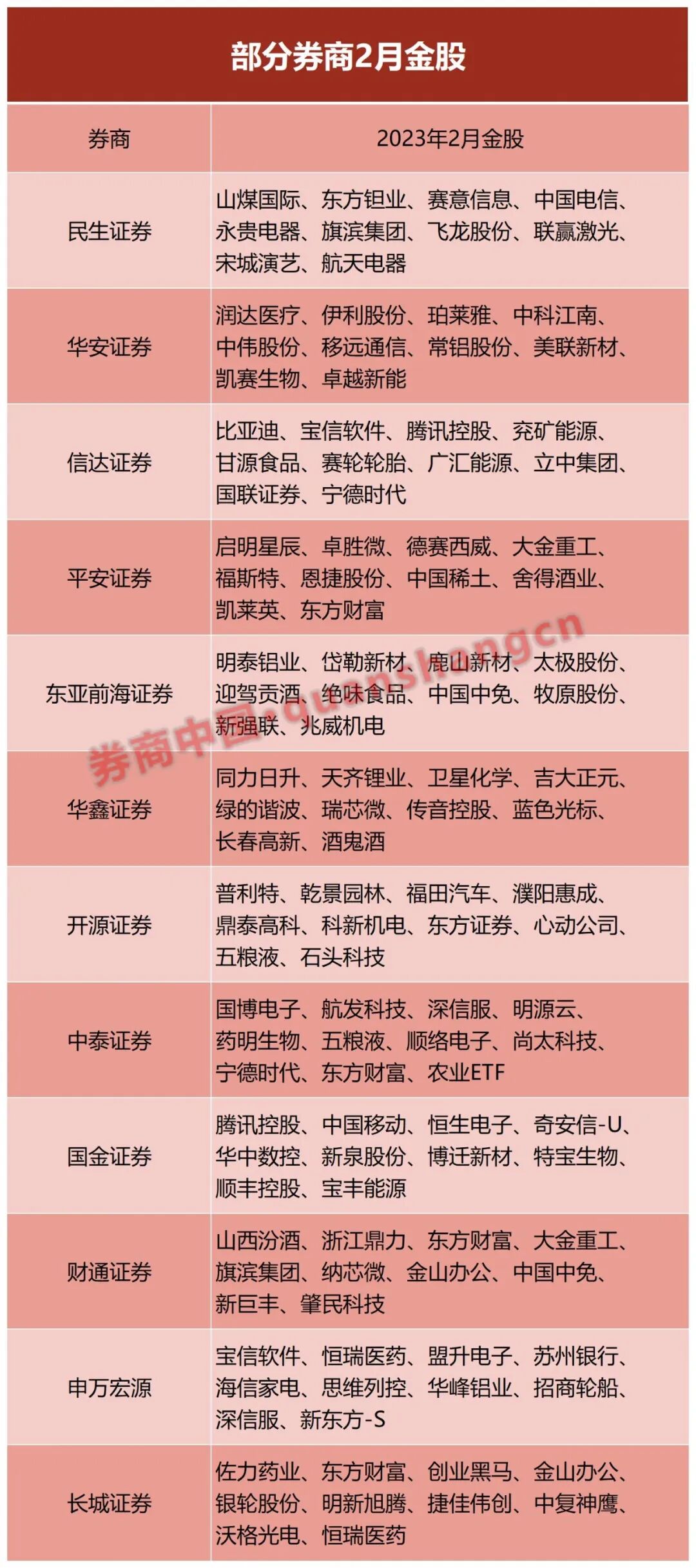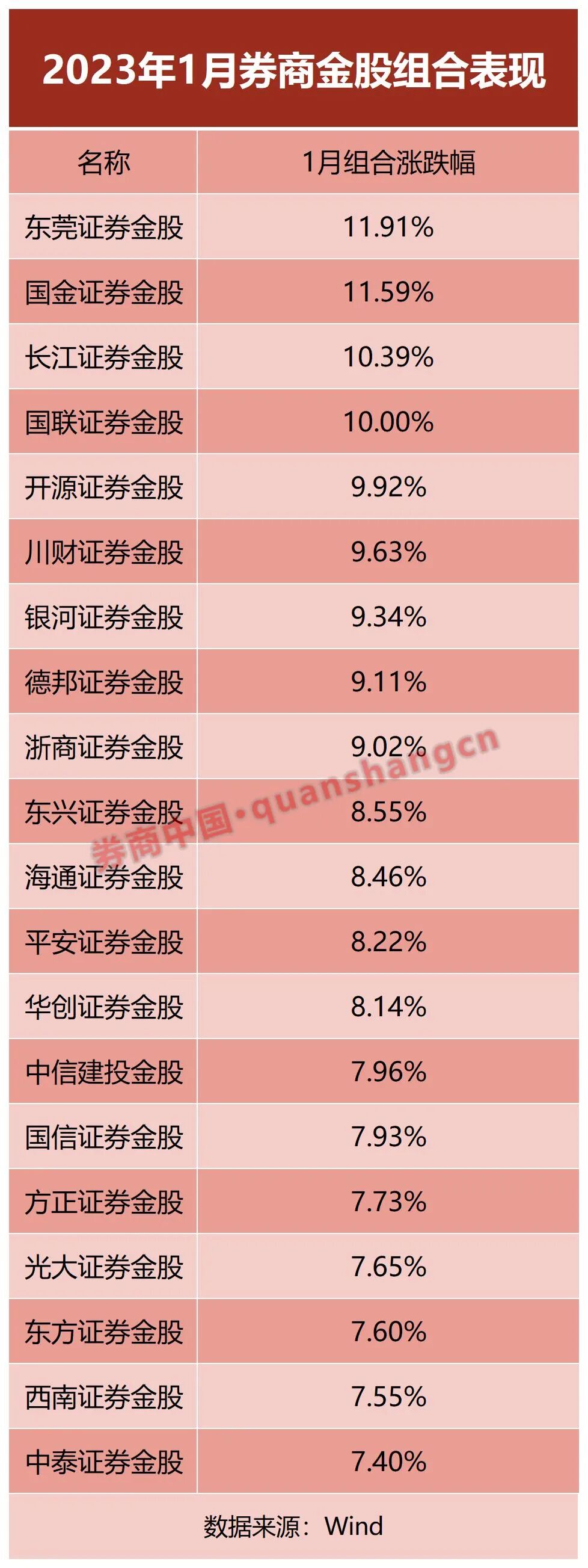 在过去的1月份,券商金股喜迎“开门红”,悉数斩获正收益,东莞证券以11.91%的单月涨幅排名第一,其推荐的10只金股当月全部上涨。