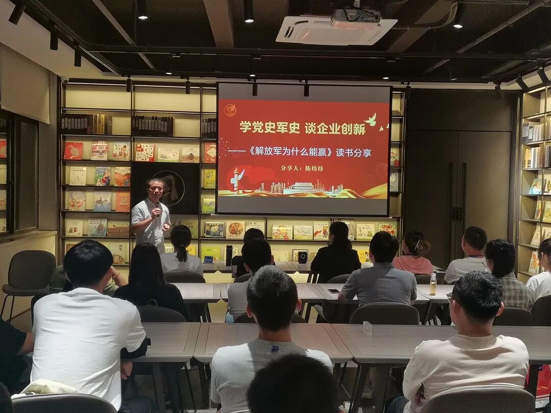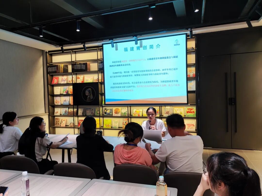 当天晚上,在涵江区两新党建基地的莆阳书坊开展第二场沙龙活动。省青创培训专员朱敏娟向学员们介绍了省青创及省青创教育培训体系;莆田青创会员、莆田市中小企业服务平台的运营负责人陈炜炜以一名曾经的老兵、一名现在的助企热心人身份与学员们分享了主题为《学党史军史,谈企业创新》报告,受到了学员们的热烈反响与好评。