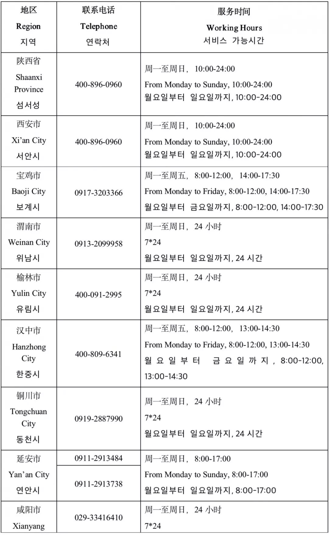 섬서성 도시별 심리상담번호