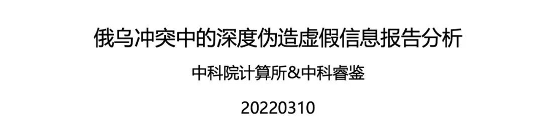 昨晚在读者群里获得一份PDF文件,标题是《俄乌冲突中的深度伪造虚假信息报告分析》,作者署名是“中科院计算所&中科睿鉴”。