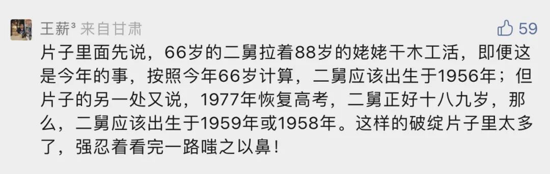 譬如视频开始不久,唐浩就说:“全市统考从农村一共收上去3份试卷,其中一份就是二舅的。”读者留言指出这位“二舅”念初中时最多十五六岁,正是1971~1972年,文革期间哪来的什么“全市统考”?