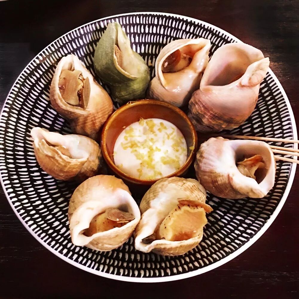 第二款酒是法国阿尔萨斯的白葡,用来搭配螺肉和法国蓝口贝。Domaine Loew,一个很早开始实践生物动力法的酒庄 ,Bruderbach Clos Des Frères 在当地非常有名,出产的Riesling(雷司令)成熟度非常高,饱满并保有极高的酸度,矿石的凌冽感在这款雷司令里面也彰显的淋漓尽致。