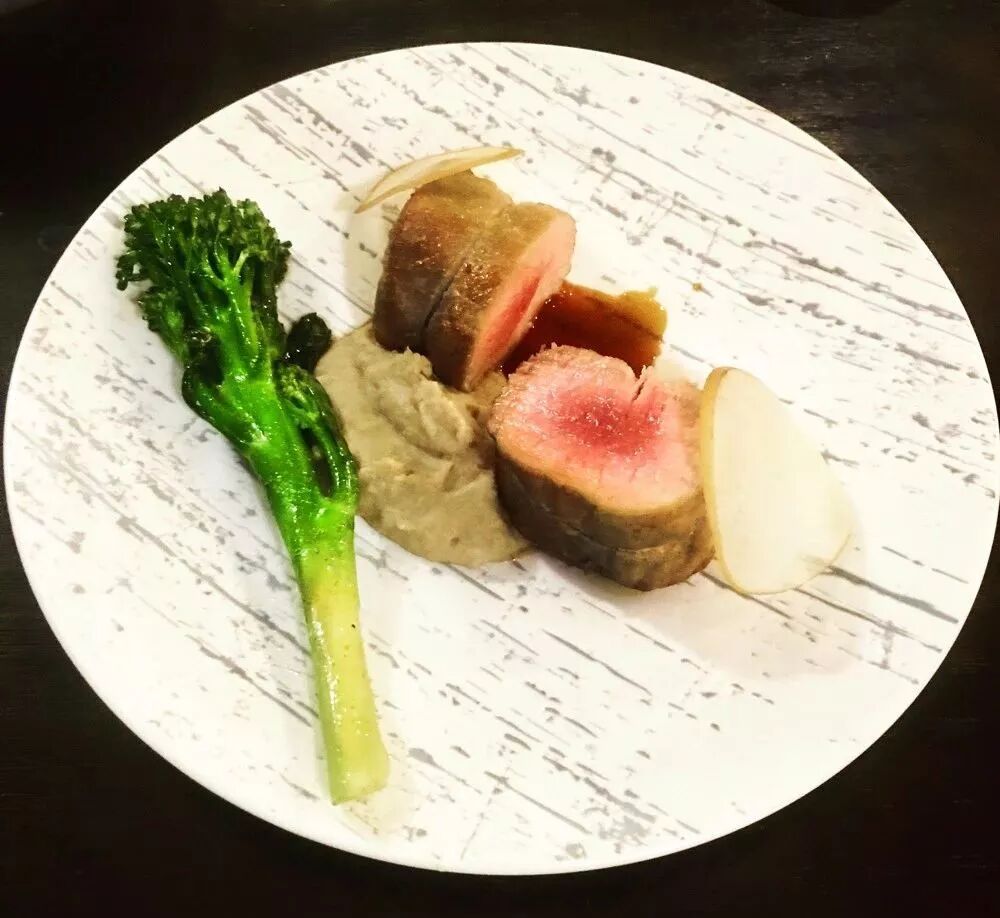 酒庄R.Lopez一直秉承着最少干预葡萄酒的酿造过程。跟这道猪里脊的概念相同,猪肉味道干净,佐以栗子泥和梨片,最大限度地体现了食材的本味。