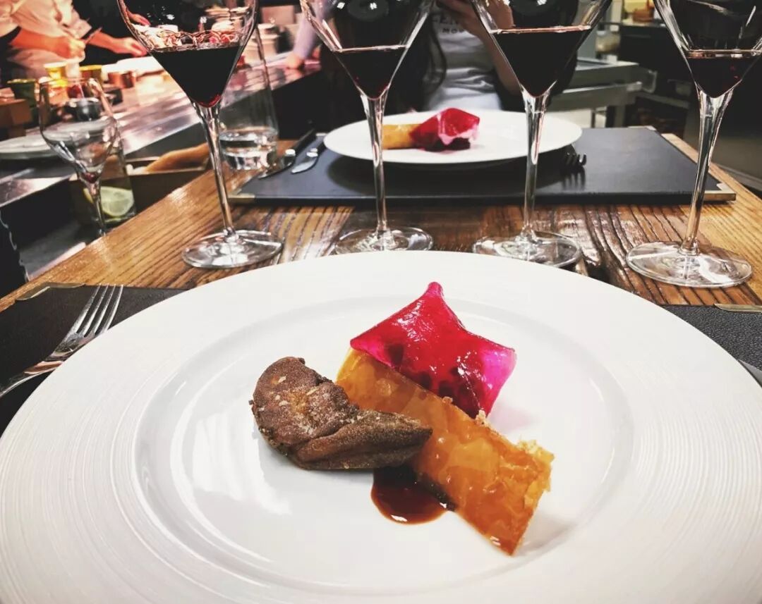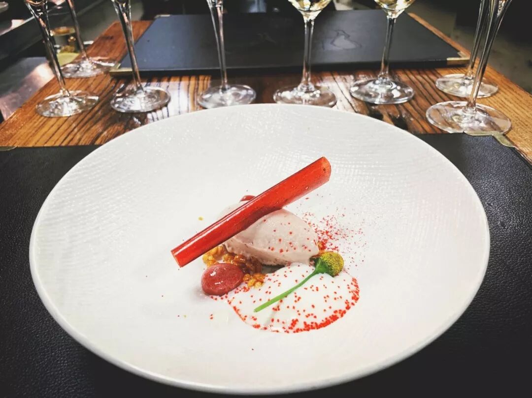 到了草莓的季节,草莓冰淇淋、草莓果丹皮、草莓果冻加上焦糖脆米和玛斯卡伯尼乳剂,各种元素叠出层次,很大尺度地体现主角味道层次,味道风格一致,非常的少女系,正餐之后,让人非常的舒爽。另外,他家的配酒非常专业,侍酒师超级帅,但是这里没有图片,想要看的直接去餐厅吧。